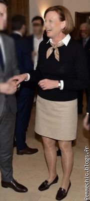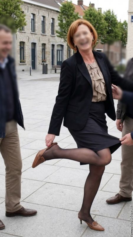 Peut-être que dans son salon, elle oserait nous montrer un peu plus de son intimité ( jupe remontée, corsage bien ouvert, jambes écartées etc...)? Cela serait agréable avec une Dame qui semble si dynamique!